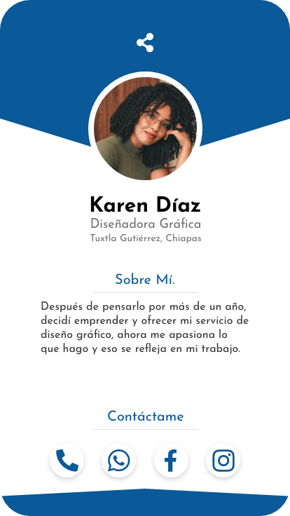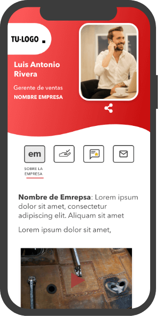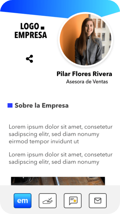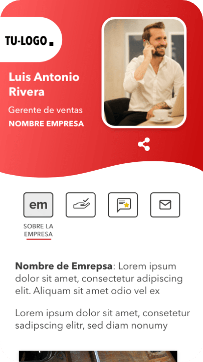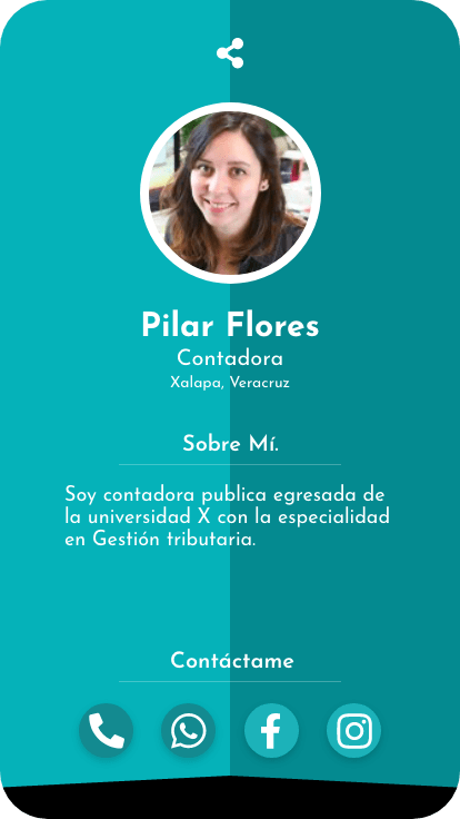 Comparte fácilmente tu tarjeta con cualquier persona a través de mensaje de texto, email, redes sociales, whatsApp y más.